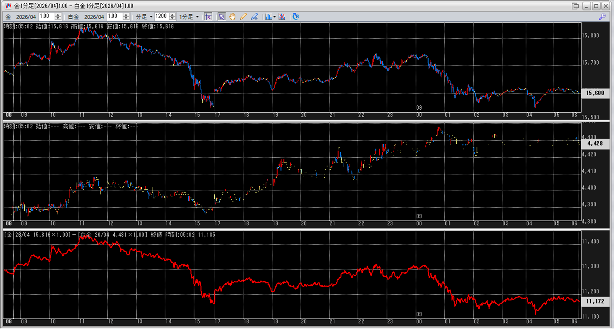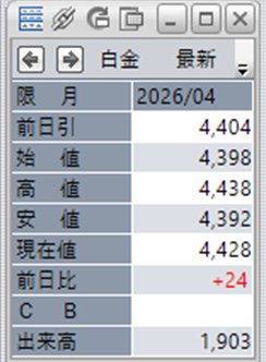 中:大阪取引所 白金 2026年4月限 1分足