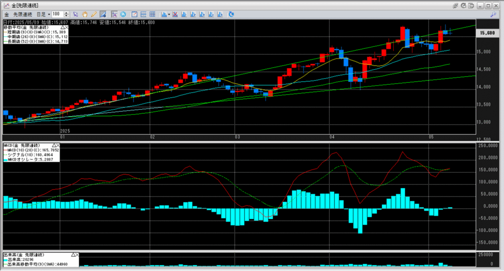 金白金鞘のチャートは、右肩上がりのチャートは維持しています。