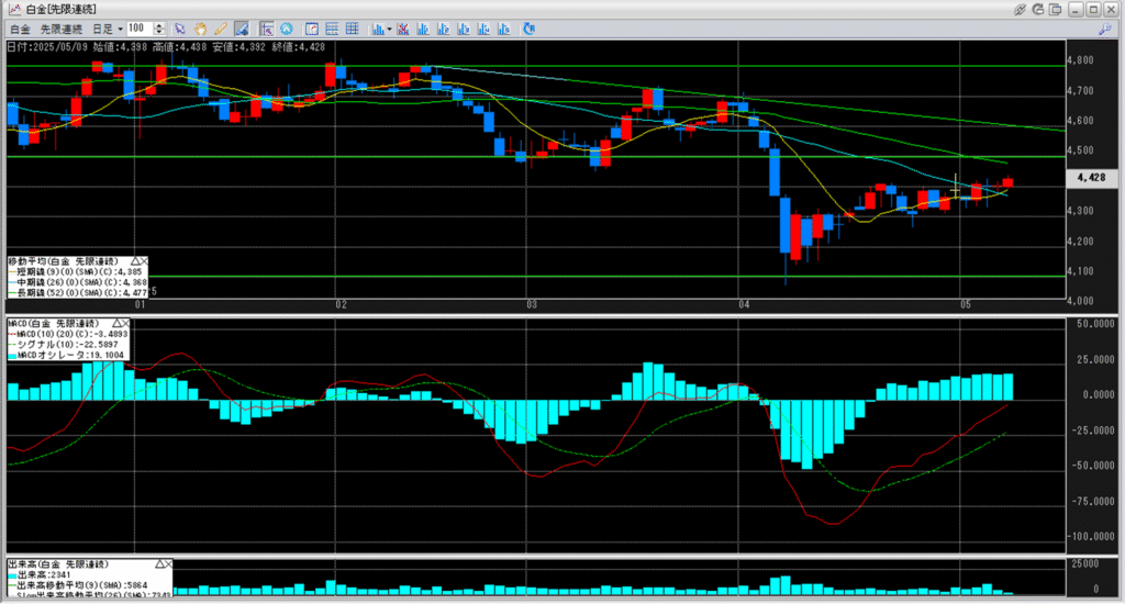 MACDもゴールデンクロスとなることで、本格的に白金価格は上がっていくのか。