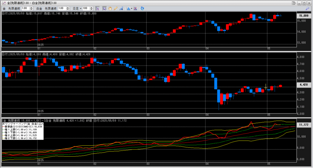 金白金の鞘をボリンジャーバンドで見ていきます。