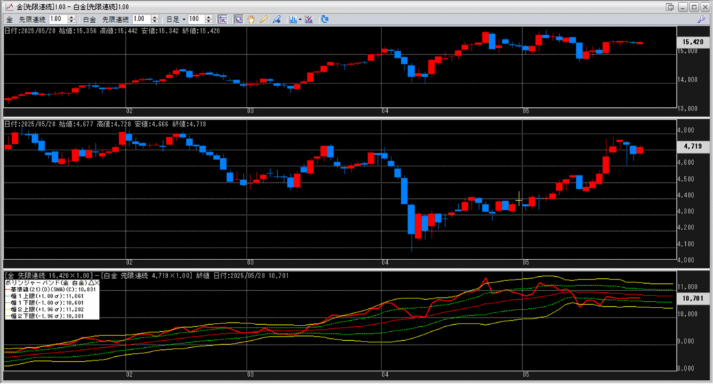 金白金の鞘をボリンジャーバンドで見ていきます。