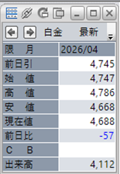 5/31 6:00の金白金の鞘の値段は、10,666円となっております。