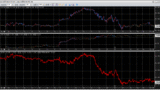 移動平均の短期線は上向き、中期線は下向き、長期線は上向きとなっています。