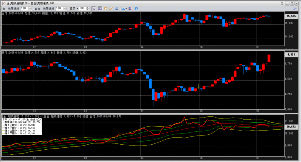 金白金の鞘をボリンジャーバンドで見ていきます。