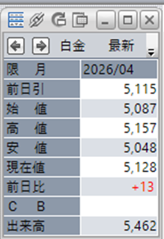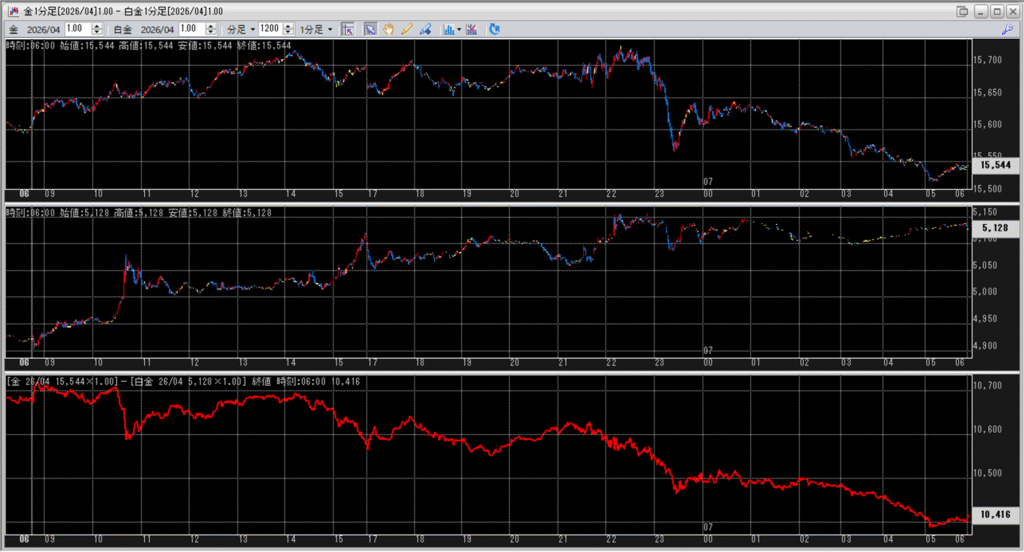 下:金白金鞘(金白金の価格差 = 金1グラムの価格 - 白金1グラムの価格)