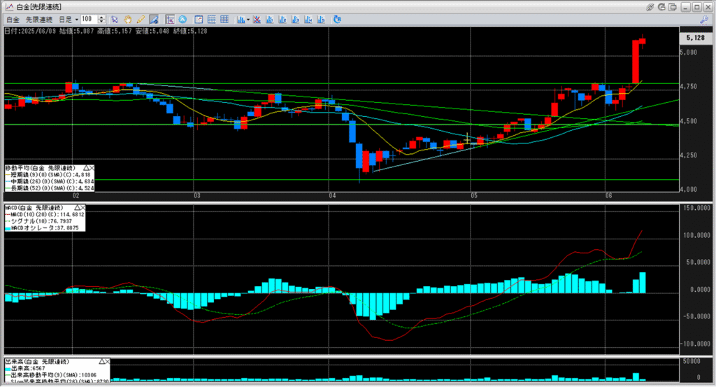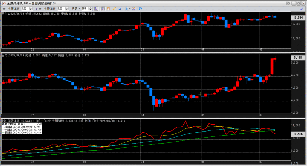 下記に金白金鞘の移動平均線のチャートを貼り付けています。