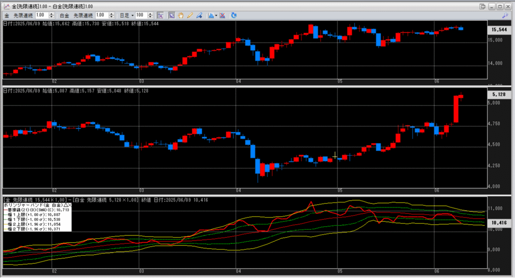 金白金の鞘をボリンジャーバンドで見ていきます。