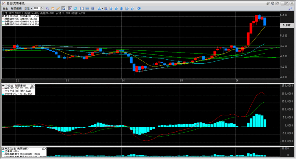 5,500円から白金価格は急落し、5,300円も割り込んできています。