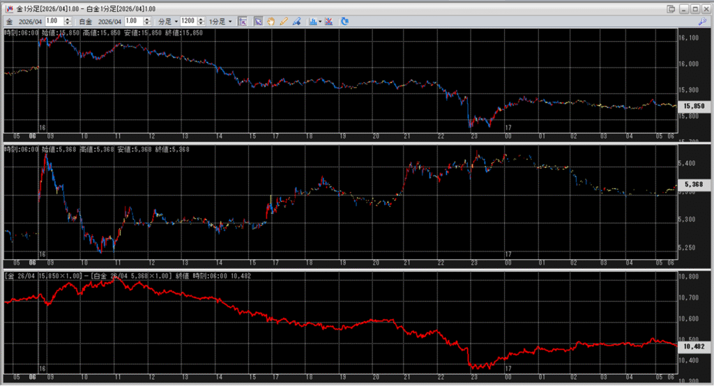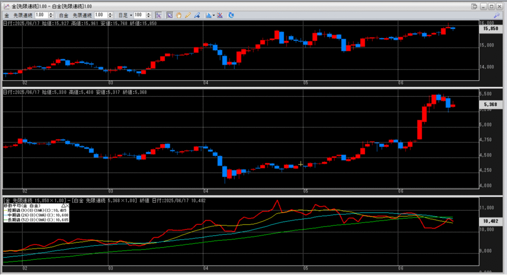 下記に金白金鞘の移動平均線のチャートを貼り付けています。