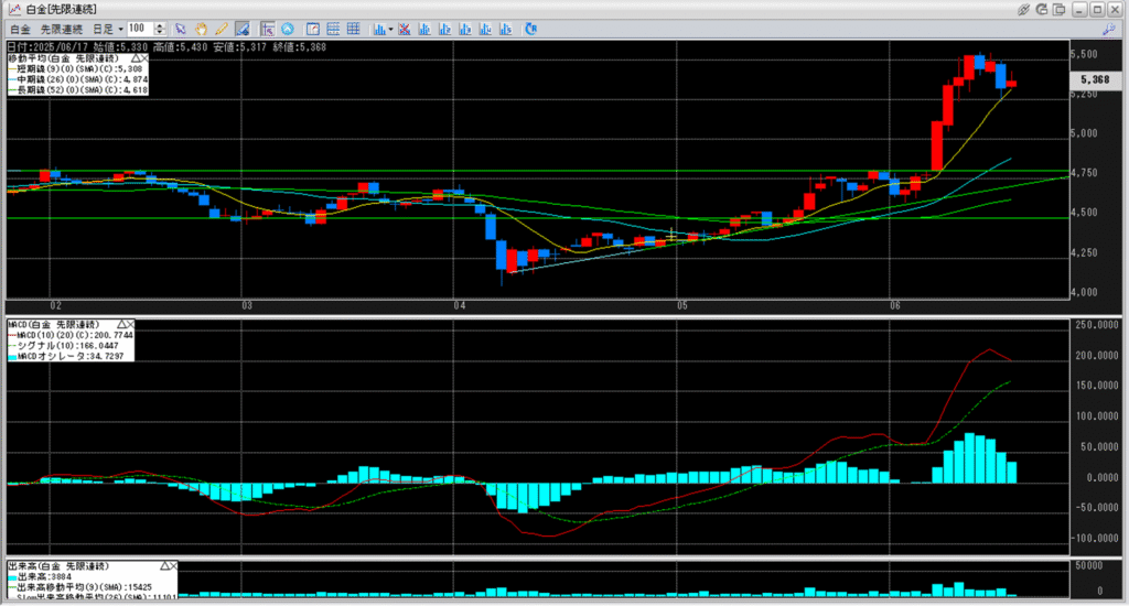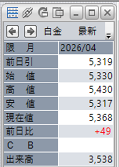 5,500円から白金価格は急落し、5,300円も割り込んでいました。