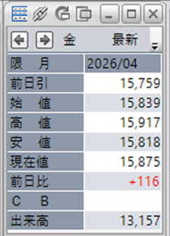 金白金鞘の史上最大値は11,478円のままとなっています。