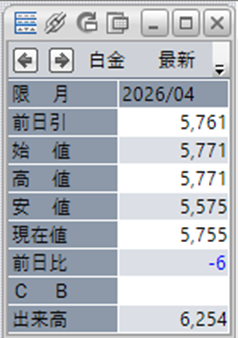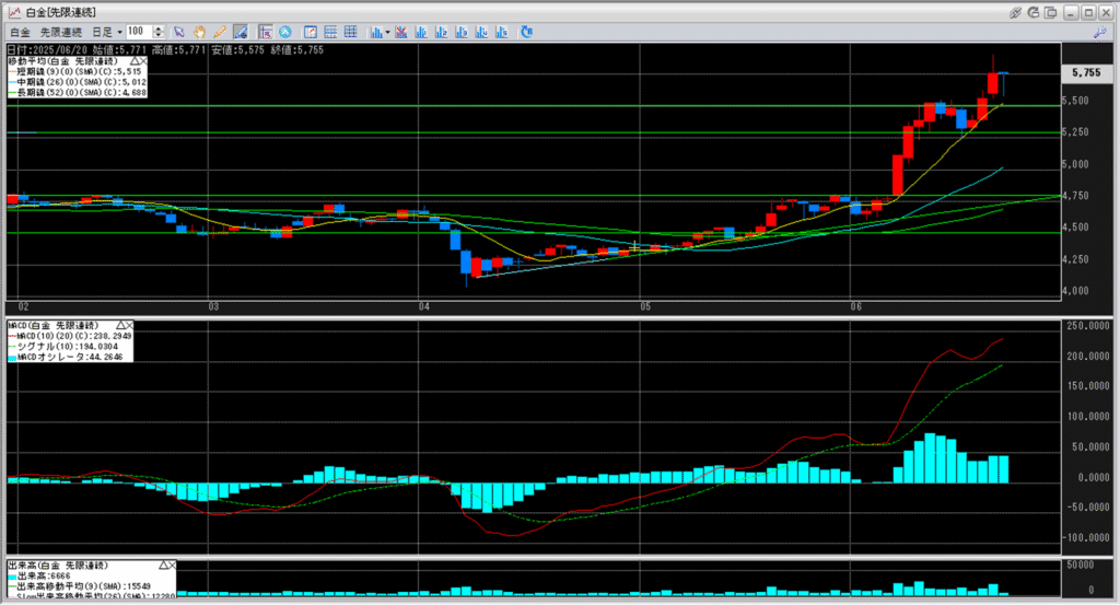 5,500円を超えてきましたので、白金高騰が続く可能性が高まっています。
