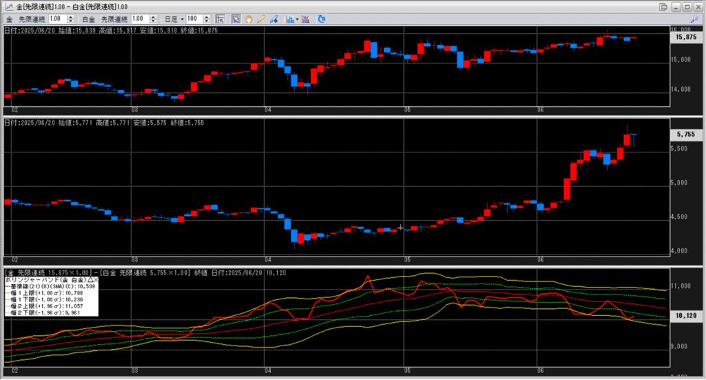 金白金の鞘をボリンジャーバンドで見ていきます。