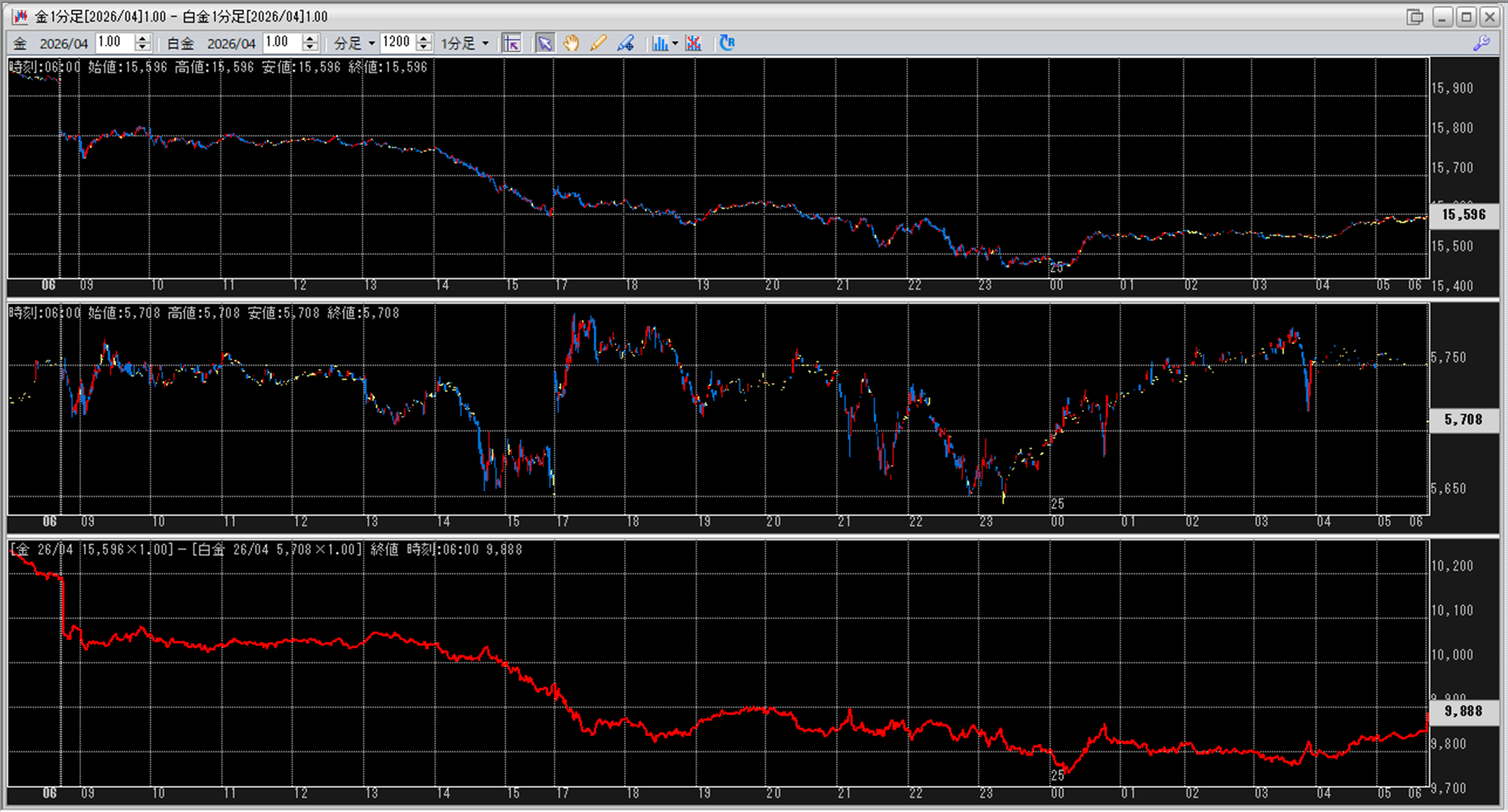下:金白金鞘(金白金の価格差 = 金1グラムの価格 - 白金1グラムの価格)