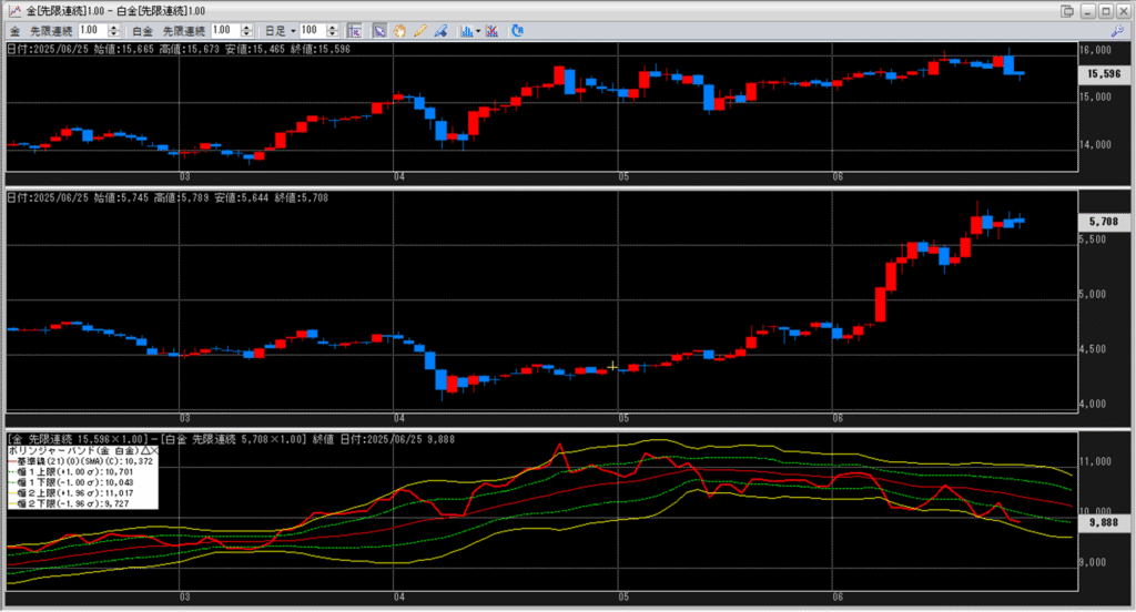 金白金の鞘をボリンジャーバンドで見ていきます。