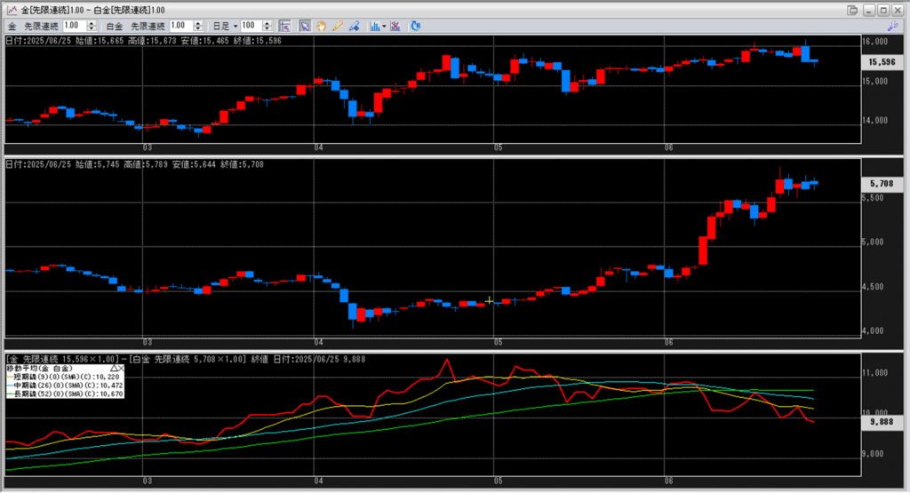 下記に金白金鞘の移動平均線のチャートを貼り付けています。