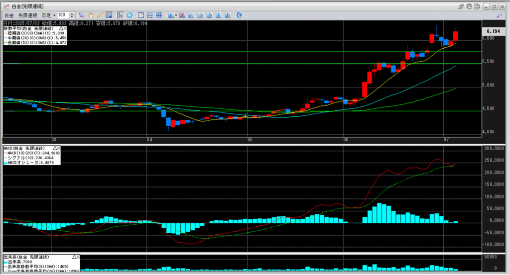 5,500円を超えてきましたので、白金高騰が続く可能性が高まっています。