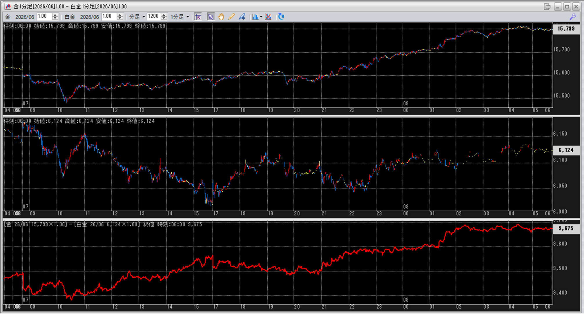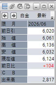 中:大阪取引所 白金 2026年6月限 1分足