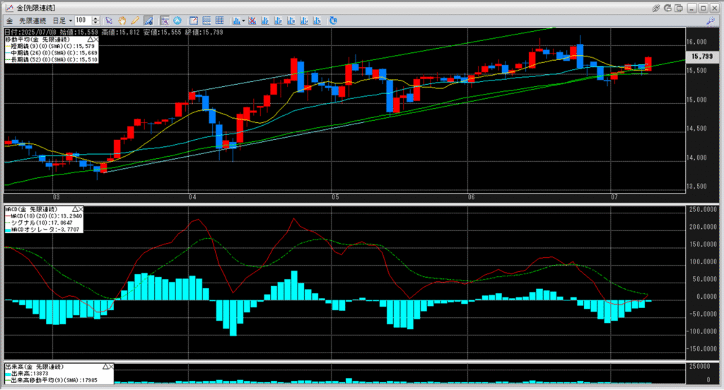 金価格は、6:00時点での終値は15,799円となっています。