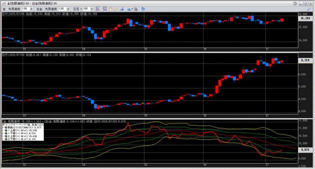 金白金の鞘をボリンジャーバンドで見ていきます。