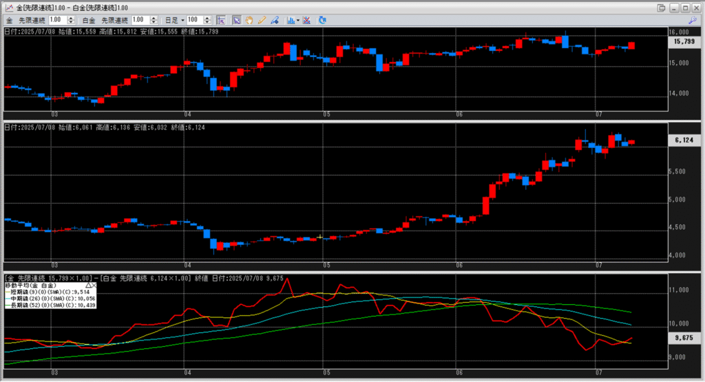 下記に金白金鞘の移動平均線のチャートを貼り付けています。
