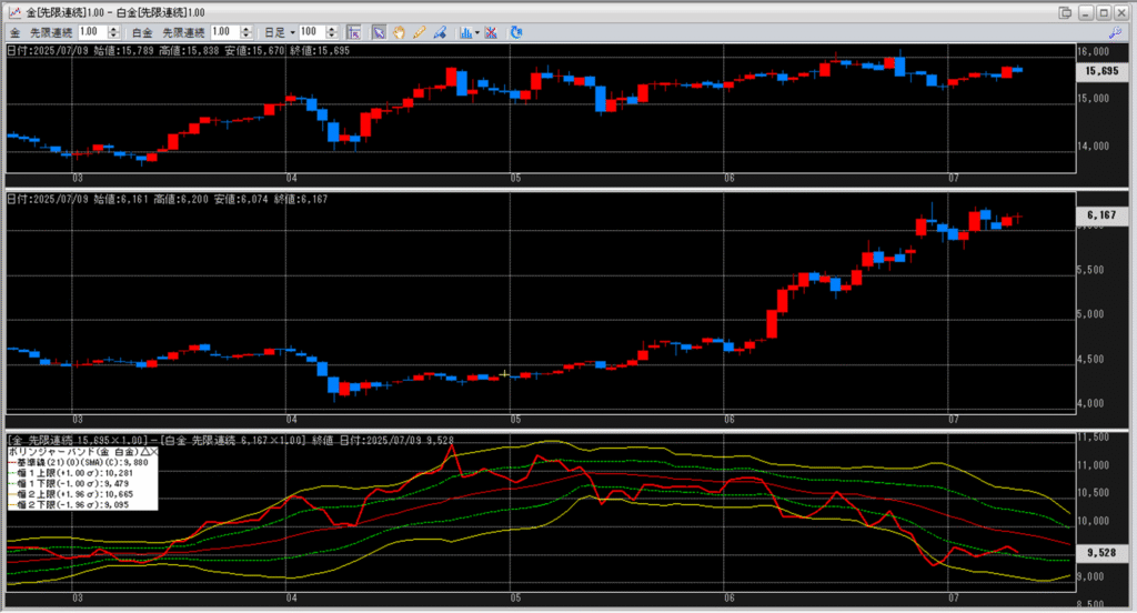 金白金の鞘をボリンジャーバンドで見ていきます。