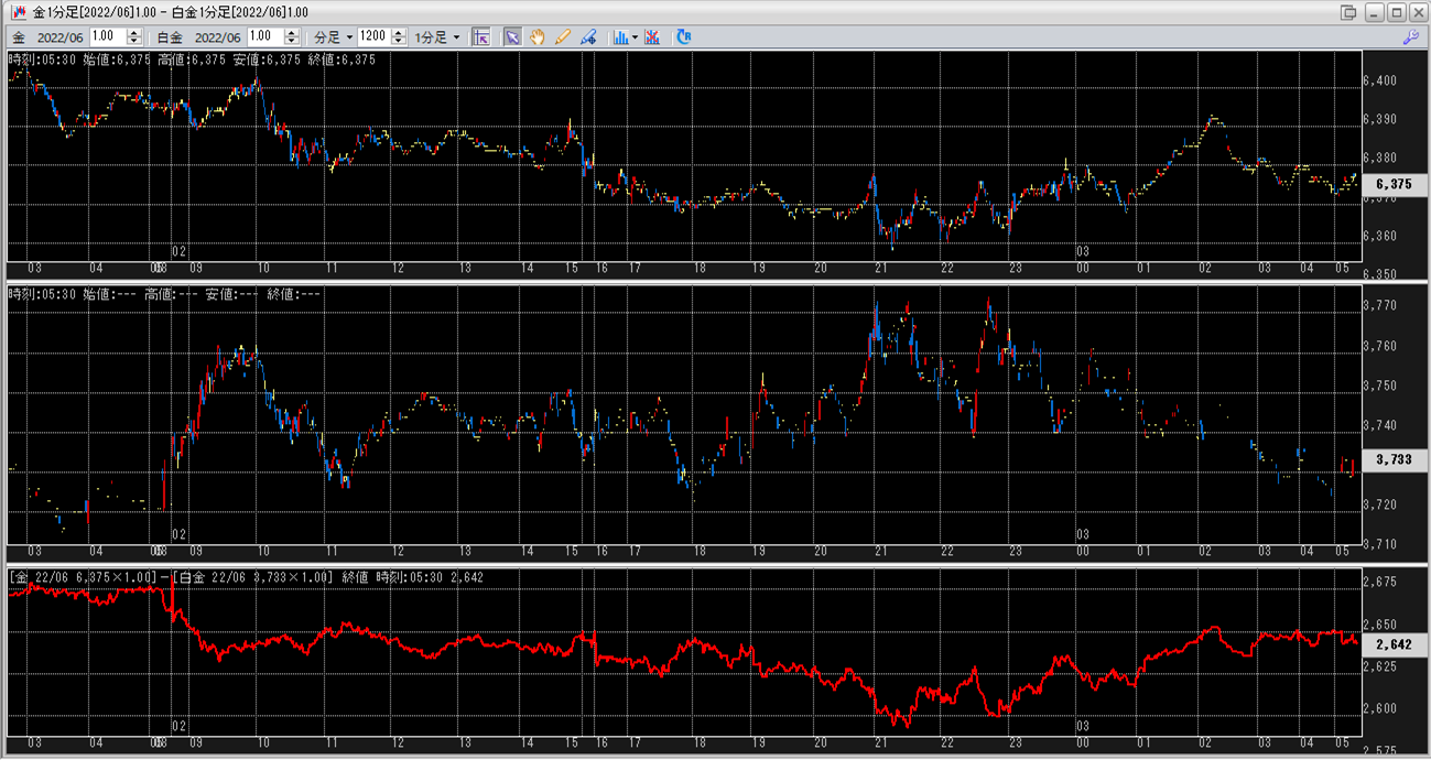鞘拡大の仕掛け金買い1枚-白金売り2枚を増やしていくかどうか考えていきます。