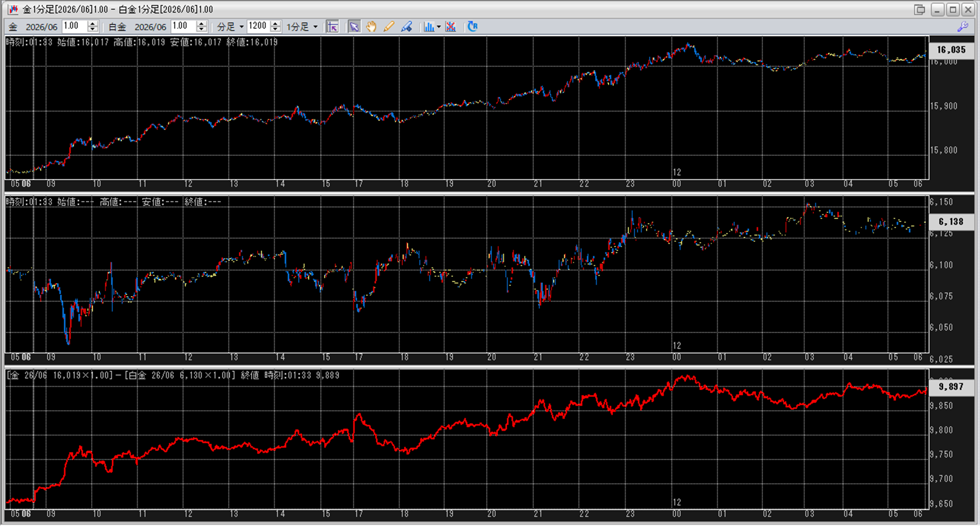 なんだったら、鞘拡大の仕掛け金ミニ買い1枚-白金売り1枚を追加しようかと考えています。