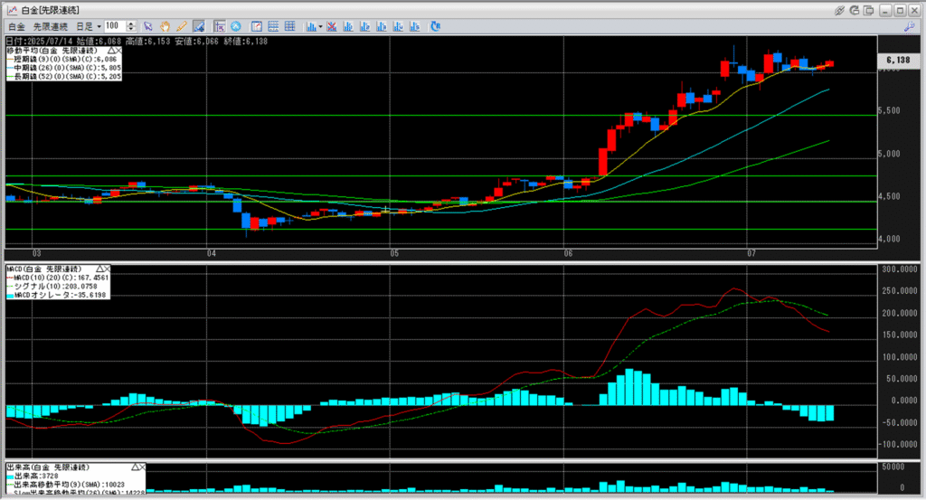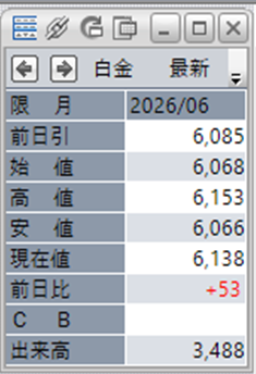 5,500円を超えてきましたので、白金高騰が続く可能性が高まっています。