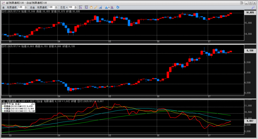 下記に金白金鞘の移動平均線のチャートを貼り付けています。