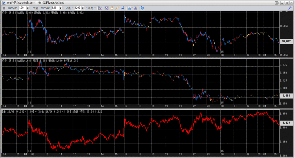なんだったら、鞘拡大の仕掛け金ミニ買い1枚-白金売り1枚を追加しようかと考えています。