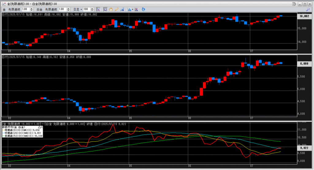 下記に金白金鞘の移動平均線のチャートを貼り付けています。
