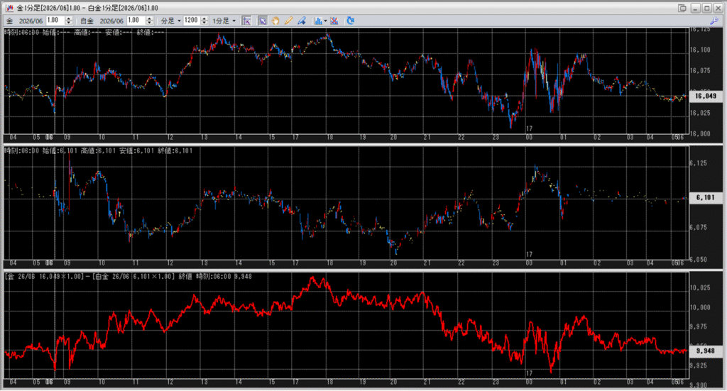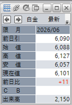 中:大阪取引所 白金 2026年6月限 1分足