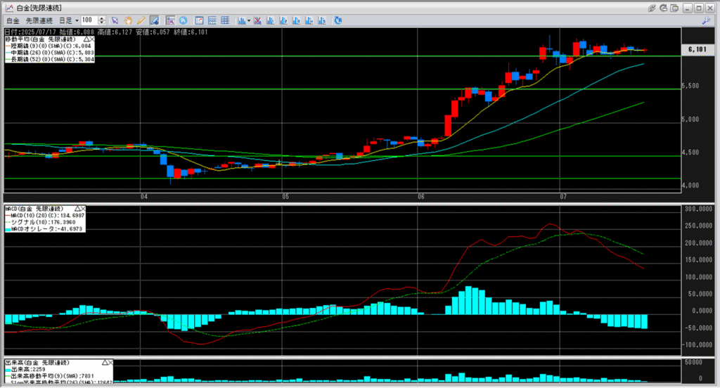 白金のチャートを見ると、