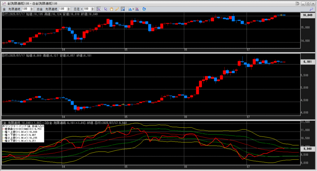 金白金の鞘をボリンジャーバンドで見ていきます。