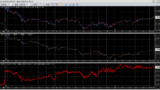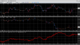 移動平均の短期線、長期線は下向き、中期線は僅かに上向きになっています。