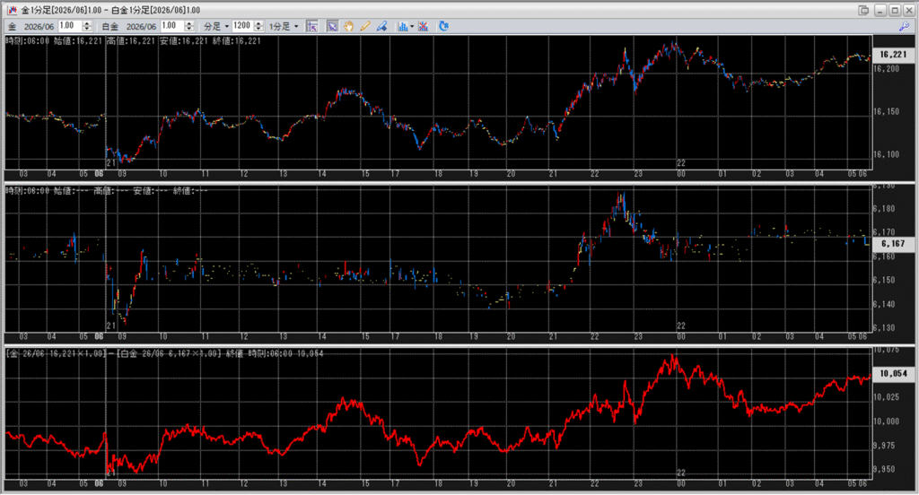 また金白金鞘拡大の仕掛け金ミニ買い1枚-白金売り1枚を
