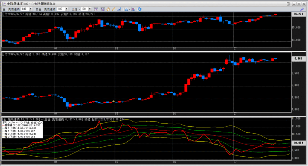 金白金の鞘をボリンジャーバンドで見ていきます。