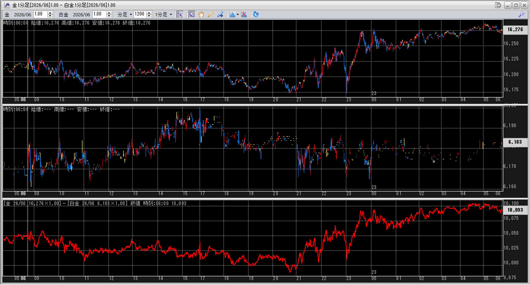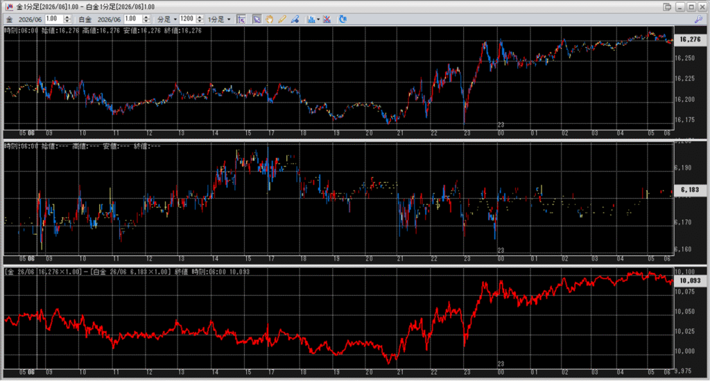 中:大阪取引所 白金 2026年6月限 1分足