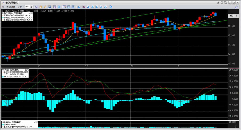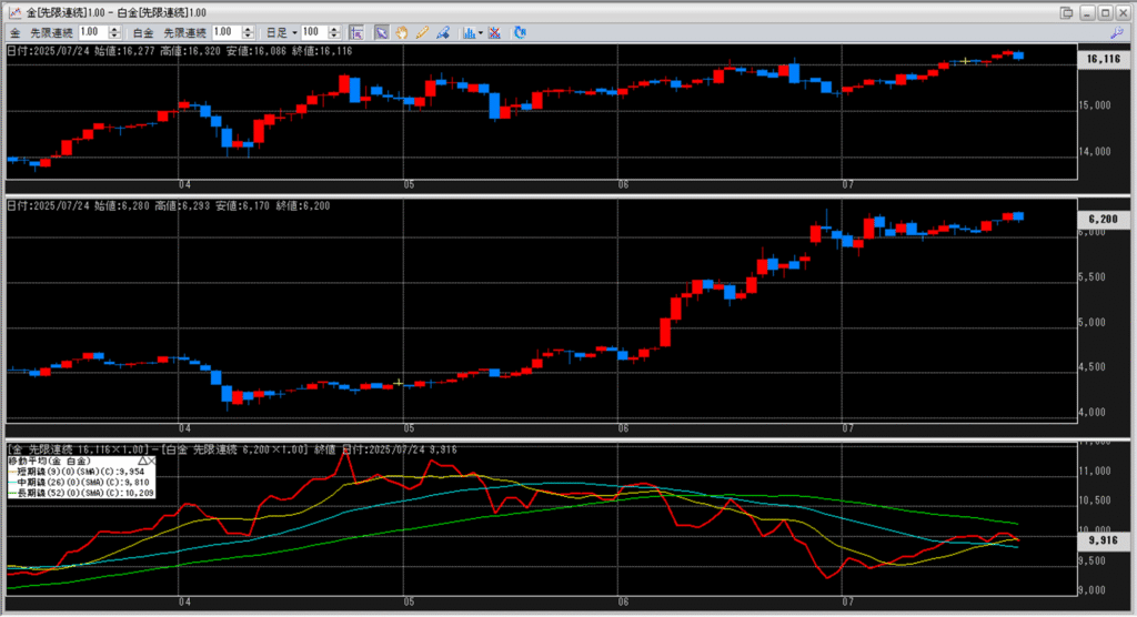 下記に金白金鞘の移動平均線のチャートを貼り付けています。
