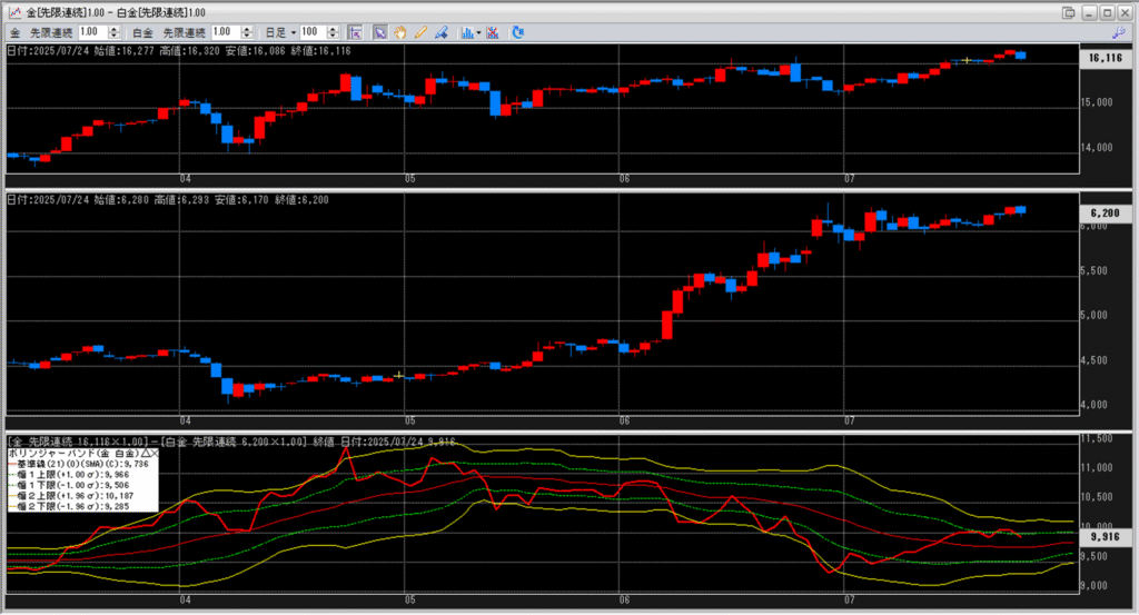 金白金の鞘をボリンジャーバンドで見ていきます。