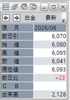 中:大阪取引所 白金 2026年6月限 1分足