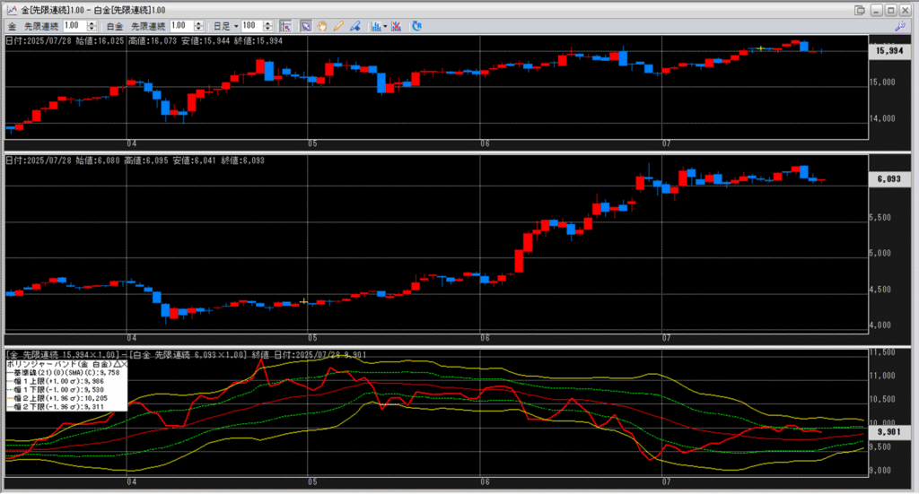 金白金の鞘をボリンジャーバンドで見ていきます。