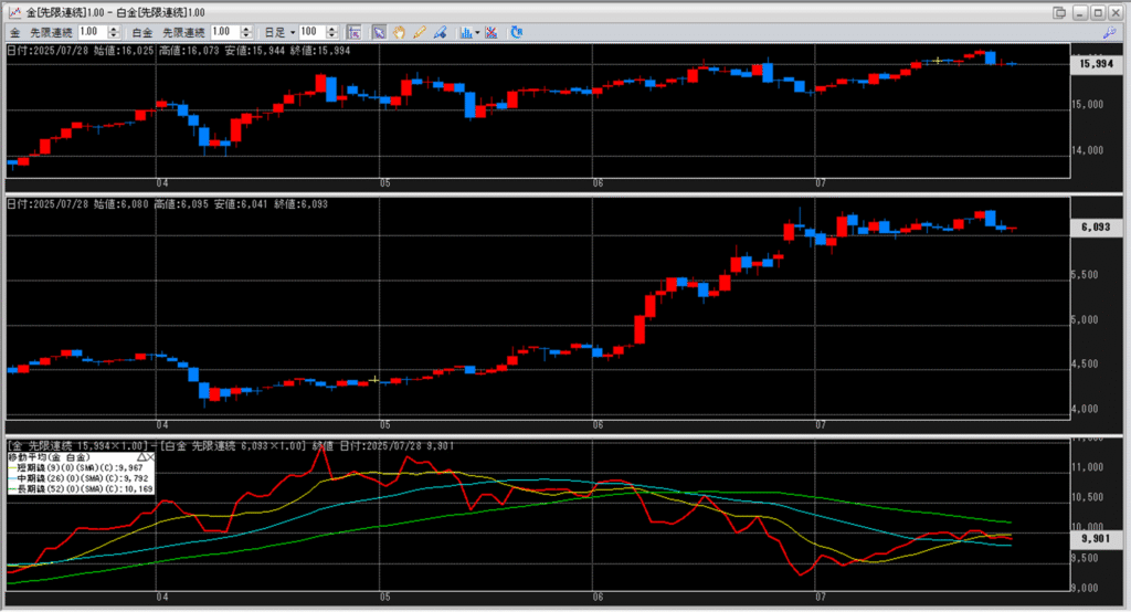 金白金の鞘の移動平均を見ていきます。