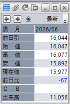 移動平均線の一番上に位置している短期線16,090円を割り込んで、