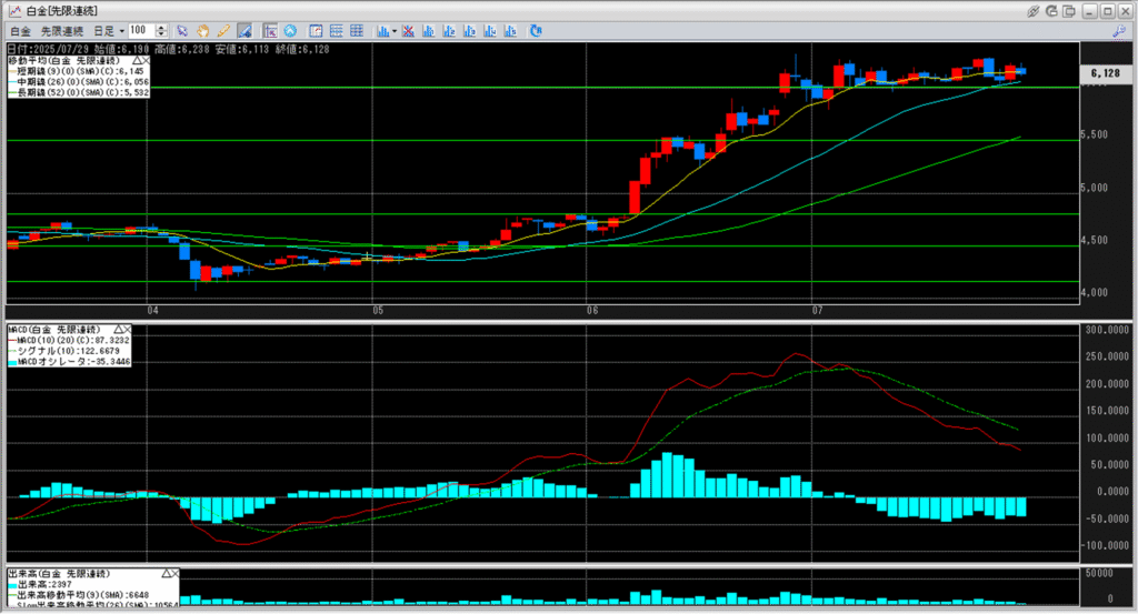 デッドクロスの状態ですが、白金価格は下がらないので、白金価格は強いのか?