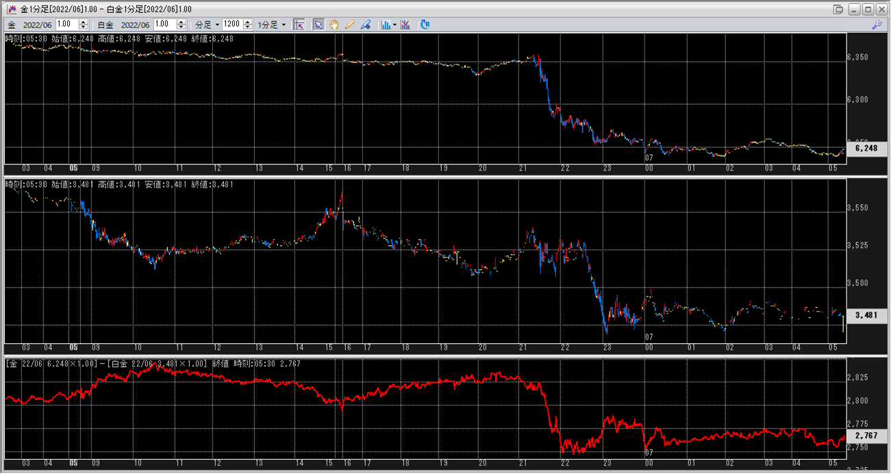 上:大阪取引所 金 2022年6月限 1分足