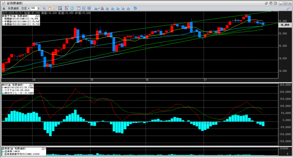 金白金鞘の急拡大を受けて、短期線と中期線が上向きになってきています。