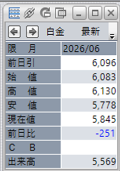 5,500円を超えてきましたので、白金高騰が続く可能性が高まっています。