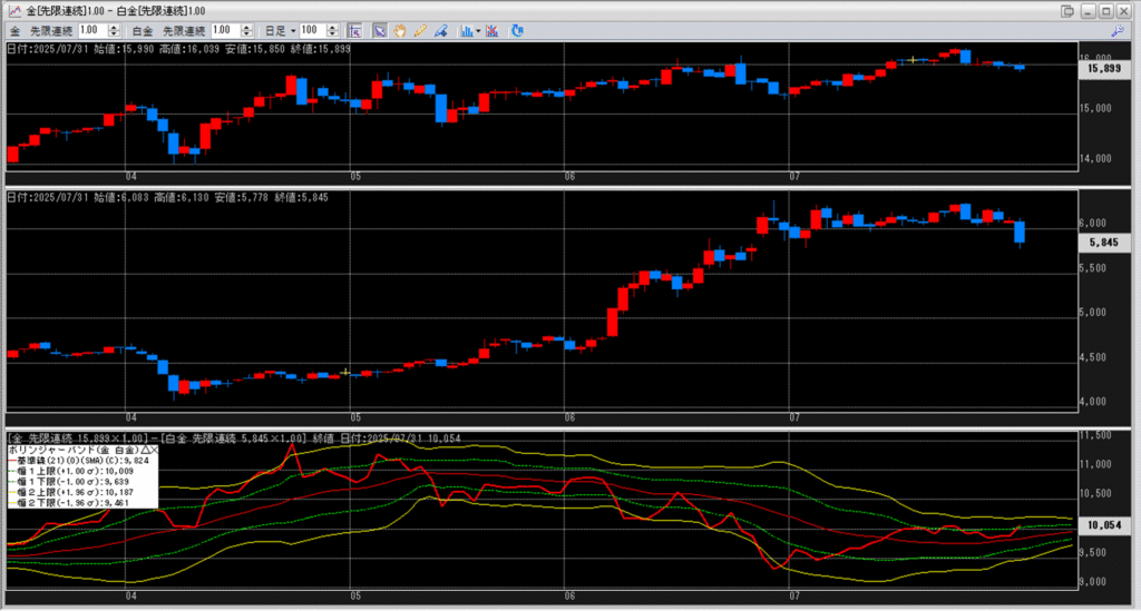 金白金の鞘をボリンジャーバンドで見ていきます。